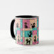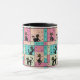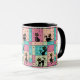 Modèle de couleurs moderne du milieu du siècle. Cinq chats noirs profitent de la grille horaire dans un design mondrianais.
