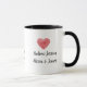 Comptez vos Bénédictions en belle typographie avec une empreinte de coeur rouge et un modèle pour ajouter des noms. Il s'agit d'une tasse personnalisée fabuleuse, parfaite comme un cadeau Thanksgiving ou pour n'importe quelle période de l'année. Voir la collection pour plus d'idées cadeaux.