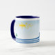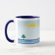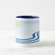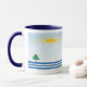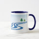 Flottez le long d'une rivière paresseuse avec le soleil jaune et brillant d'un beau ciel bleu et des arbres à feuillage persistant verts le long des rives. Cette tasse présente un design abstrait simple qui vous fera rêver.
