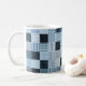 Conception de surfaces composées. Motif en patchwork sans couture de carrés cousus avec différents ornements géométriques. Impression textile en bleu.