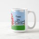 Un design rustique avec une ferme de campagne, une grange rouge avec un silo. Ce design est prêt à être personnalisé avec le nom d'un fermier. "Cette tasse appartient au fermier John. Ajoutez un nom à la personnaliser.