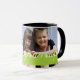 Conception verte et blanche de tasse de grand-papa, par des red_dress, comportant le texte coupé "nous aimons le grand-papa", imprimé sur un arrière - plan vert, contre une photo faite sur commande.