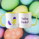 Ajoutez une touche de charme printanier et d'humour avec ce design adorable représentant un poussin duveteux sortant de son œuf, accompagné de la phrase ludique « Feeling Clucky ? ». Doux, drôle et un peu coquin, ce design fait sourire partout où il va.