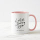 Que le voyage commence ! Mug cadeau de célébration de graduation moderne avec un design élégant script calligraphie et votre message texte personnalisé de félicitations ou nom, classe de etc au diplômé ci-dessous.