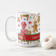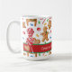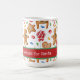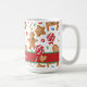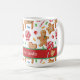 Tasse à café de vacances avec un biscuit de Noël festif et motif de bonbons sur blanc avec contrastes rouge et vert. Le texte modifiable qui dit "Cookies de Noël pour Père Noël" peut être modifié si vous le souhaitez. Choisissez votre taille et votre style de couleur. Coordonnées avec une serviette de cuisine, tablier de cuisson et autres modèles dans la collection Christmas Kitchen à Pinkladybugs sur Zazzle.