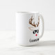 Noël rennes à nez rouge est un cool derrière des lunettes de soleil en miroir noir. Ce design de Noël présente un visage de rennes de vacances doux avec des bois bruns et du nez rouge et des sunnies noirs et est un design de vacances de Noël amusant pour les grands ou les petits enfants. N'oubliez pas de changer le nom des deux côtés de la tasse, ou d'ajouter un message personnalisé.
