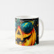 Un vaisseau spatial décalé Jack-o-lanterne portant des lunettes de soleil, mélangeant des vibes d'Halloween avec une touche cosmique cool.
