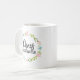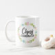 Amusante tasse pour les femmes ou les mamans professionnelles. Le texte dit "Coordinateur du Chaos" et il y a une couronne florale d'aquarelle autour du texte. De grands cadeaux pour les mères ou les enseignants ! Design féminin et humoristique.