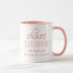 Coordinateur Chaos Typographie rose Personnalisée Coffee Mug présente un design simple du texte "chaos coordinateur (votre nom) alimenté par le café" dans un script amusant de calligraphie rose avec votre nom personnalisé ci-dessous. Personnalisez en modifiant le texte dans la zone de texte fournie. Parfait pour cette maman occupée, enseignant, chef d'équipe sportive ou patron de travail.