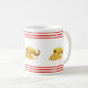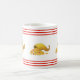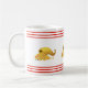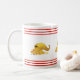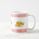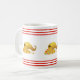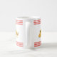 Corne d'abondance dorée élégante moderne avec confettis métallisés dorés et mug à café ou à thé à rayures rouges.