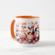 Cette tasse délicieuse est une célébration de l'amour pour le thé et les furets, illustrée par un design cosy et accueillant. Il représente trois furets ludiques dans différentes poses de plaisir, avec le furet central embrassant un coeur, symbolisant l'amour. La tasse est ornée de motifs de coeur et d'étoiles, de fleurs colorées et d'une théière chaleureuse qui se déverse dans une tasse, rehaussant le thème du confort et de l'affection. L'expression "I LOVE TEA and FERRETS" est enveloppée dans une police joyeuse, ce qui en fait un compagnon parfait pour votre boisson chaude préférée et un cadeau sincère pour ceux qui chérissent ces créatures câlées et le confort d'une bonne tasse de thé.