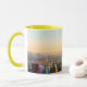 Le coucher de soleil sur New York jette une lumière dorée sur la ville.