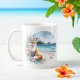 L'été vibes tasse avec un renard aquarelle sur la plage. Personnalisable .