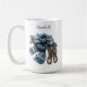 Aménagement sur le thème de l'hiver, dans une atmosphère cosy et élégante. Au centre se trouve une épaisse écharpe tricotée dans une teinte bleu-gris, attachée à une grande proue décorative. Les flocons de neige et les branches de pins sont éparpillés autour, ce qui renforce l'ambiance hivernale. À côté du foulard se trouve une paire de bottes d'hiver robustes et brunes, suggérant l'usure à l'extérieur. Il y a aussi quelques feuilles de couleur automne (brun doré), ce qui crée une transition saisonnière entre l'automne et l'hiver. Cette tasse fait un beau cadeau pour les filles, la mère, l'enseignant. Personnalisez cette belle tasse pour être unique avec votre nom. Tous les styles de texte, couleurs, tailles peuvent être modifiés. Cade Design © Vous pouvez personnaliser avec votre nom, monogramme, initial ou texte. Vous pouvez modifier la couleur du texte et le style de police à l'aide de l'option customiser. VEUILLEZ NOTER : Les couleurs affichées en ligne peuvent varier légèrement du produit réel. Et cette carte n'a pas de vraie parties scintillant, seulement des images plates.