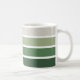 Ce design de tasse offre une prise audacieuse et rafraîchissante sur un motif classique avec ses rayures horizontales frappantes. Le design comporte un dégradé de verts, d'un pastel clair au sommet, passant à un vert de forêt riche au fond. Cette palette naturelle est subtilement divisée par des lignes blanches propres, ajoutant un effet visuel moderne et net à la tasse. Le choix de teintes vertes évoque un sentiment de croissance et de vitalité, qui convient pour commencer la journée avec une boisson chaude ou profiter d'une pause dans l'après-midi. Les rayures blanches contribuent à créer une atmosphère fraîche et tonifiante, ce qui en fait un complément vivant à toute collection de tasses. Un design à la fois dynamique et apaisant, parfait pour les amoureux de la couleur la plus restauratrice de la nature.