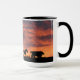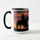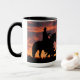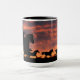 Des chevaux sauvages et un cow-boy qui s'accumulent au coucher du soleil dans un ciel brillant de couleur sud-ouest. Une tasse à café ou tasse de cowboy occidentale très cool. Fait un grand cadeau pour le type du ranch aussi.