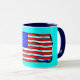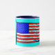 Cette jolie tasse présente ma photo originale du drapeau des Etats-Unis d'Amérique, stylée dans une technique illustrée et pop-art pour une apparence artistique sur un arrière - plan bleu aqua. La poignée et l'intérieur de la tasse sont d'un bleu foncé pour compléter l'oeuvre d'art. Ce sont des tasses de 11 onces, juste la taille idéale pour votre café ou thé maison - ou même du chocolat chaud! Il ferait un grand cadeau et vous pouvez mettre des paquets de café, des sachets de thé ou du chocolat chaud à l'intérieur. Une autre idée de cadeau est de mettre un petit plante dedans pour le rendre spécial pour votre être cher.