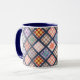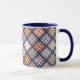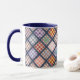 Cette tasse amusante est dotée d'un motif de courtepointe vintage, traité avec un style illustré pour un style artistique. La poignée et l'intérieur de la tasse sont bleus pour compléter l'oeuvre d'art. Ce sont des tasses de 11 onces, juste la taille idéale pour votre café ou thé maison - ou même du chocolat chaud! Il ferait un grand cadeau et vous pouvez mettre des paquets de café, des sachets de thé ou du chocolat chaud à l'intérieur. Une autre idée de cadeau est de mettre un petit plante dedans pour le rendre spécial pour votre être cher. Un grand cadeau pour un couette, un amoureux de la courtepointe ou un amoureux vintage.