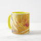 Cette jolie tasse florale présente ma photo originale d'une grande rose jaune dans un jardin, traitée avec une technique d'aquarelle pour un style illustré, peint avec une touche de fantaisie. Il a une couleur jaune à l'intérieur et sur la poignée, qui peut être changée si désiré. Ce sont des tasses de 11 onces, juste la taille idéale pour votre café ou thé maison - ou même du chocolat chaud! Il ferait un grand cadeau et vous pouvez mettre des paquets de café, des sachets de thé ou du chocolat chaud à l'intérieur. Une autre idée de cadeau est de mettre un petit plante dedans pour le rendre spécial pour votre être cher.