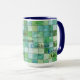 Diverses teintes de vert dans un motif imitation tuile. Cadeau, droiture, acceptation, confiance et vie éternelle - dans un acrostique ou un backronyme qui révèle le mot GRACE. C'est une tasse à deux tons. Beau cadeau pour tout chrétien.