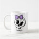 Tasse d'Halloween personnalisée avec un crâne portant un joli arc violet. Personnalisez-le avec un nom ou tout texte éffrayant que vous voulez.
