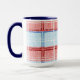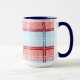Cette jolie tasse présente un motif plaid vintage retravaillé et créé numériquement par moi dans des tons rouges, blancs et bleus, pour une atmosphère patriotique. La poignée et l'intérieur sont d'un ton bleu pour compléter l'oeuvre. Ce sont des tasses de 15 onces, juste la taille idéale pour votre café ou thé maison - ou même du chocolat chaud! Il ferait un grand cadeau et vous pouvez mettre des paquets de café, des sachets de thé ou du chocolat chaud à l'intérieur. Une autre idée de cadeau est de mettre un petit plante dedans pour le rendre spécial pour votre être cher.