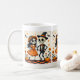Ce design fantaisiste d'Halloween présente un couple de squelettes adorablement éffrayant, habillé de costumes d'inspiration vintage. Le squelette féminin tourne dans une robe orange vif ornée d'accents pois et tournesol, tandis que le squelette mâle porte un costume noir classique avec des détails de squelette, surmonté d'un casquette sorcier pointu et d'une cravate arc orange vif. Placé sur un sol en à damiers noir et orange, la scène est animée par des fleurs de marigold en fleurs, des chauves-souris ludiques et des citrouilles moelleux, évoquant à la fois l'Halloween et l'esthétique de Día de los Muertos. Les personnages dessinés à la main et de style caricature dégagent une sensation de livre d'histoires légendaire, ce qui rend cet article parfait pour célébrer la saison éffrayante avec style et chaleur. Idéal pour les festivités, la décoration saisonnière ou tout espace qui embrasse le charme décalé d'Halloween. L'IA a généré des oeuvres d'art.