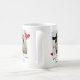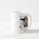 Drôle cadeau personnalisé mignon pour un couple qui a rencontré par des rencontres en ligne! Design présente une photographie des lovebirds avec le texte "It was love at first swipe!", leurs noms et un couple de coeurs rouges. Le design est répété de part et d'autre de la tasse. Un cadeau de jour de valentines parfait.
