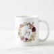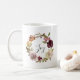 Cette tasse de vacances simple et élégante présente une couronne de fleurs aquarelle bordeaux, rose et blanche avec des accents de feuillage vert. Cette couronne élégante encadre le mot "Joie" sur un fond blanc.