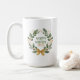 Entrez dans l'esprit des fêtes avec cette tasse à café personnalisable qui présente une illustration aquarelle d'une couronne de Noël rehaussée de feuilles de houx, de baies rouges et d'accents dorés. La typographie élégante offre un vœu de Noël sincère « Meilleurs Vœux ». Conçue dans une palette douce de vert, d'or et de rouge, cette tasse est parfaite pour répandre la joie de Noël. Personnalisez ce design en ajoutant un nom (ou des noms) et en mettant à jour l'année pour créer un objet de collection sentimental. Que vous fassiez des achats pour votre famille, vos amis ou vos collègues, cette tasse fera un cadeau de Noël attentionné, un petit remplissage de chaussette charmant et une façon confortable de savourer des boissons chaudes tout au long de la saison.