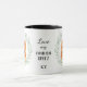 "J'AIME MON SPITZ FINNOIS" déclare cette tasse pour le propriétaire de chien Spitz finnois. Chaque côté de la tasse comporte un portrait d'un beau Spitz encadré par de douces feuilles d'eucalyptus à l'aquarelle verte. Entre les deux images se trouve le texte, qui peut être facilement personnalisé, ou même supprimé par vous, et votre monogramme ou nom.