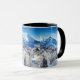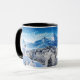 Une belle scène d'hiver avec montagnes et église, modifier le texte