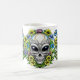Amateurs d'Ufologie art. Bleu, jaune violet et noir extraterrestre crâne art floral. Mélange pour un passionné d'Ufologie.