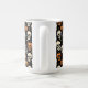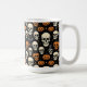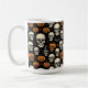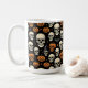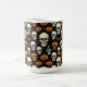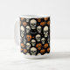 Des crânes d'orange et d'ivoire, entrecoupés de jack o'lanterns, de chauve-souris et d'étoiles se combinent pour faire une tasse de café mignonne et amusante pour Halloween.