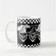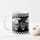 Buvez votre poison de matin dans cette tasse de cool et de café du chef riant drôle de crâne. Ce trio des crânes réalistes, pourtant heureux de chef, sautent vraiment sur le fond noir, avec les panneaux checkered noirs et blancs. L'outil de personnalisation vous permet de changer la couleur en une de votre choix, et remet à la côte les images pour adapter le texte personnalisé. Disponible dans différents styles, ceci est un amusement et un cadeau unique pour le chef exécutif, le chef sous, le chef de pâtisserie, le cuisinier de maison, la ligne cuisinier, ou n'importe qui avec une passion pour la cuisson ! Visitez www.zazzle.com/thechefshoppe pour voir plus de crânes orientés culinaires frais.