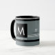 Créez un café-mug moderne, masculin et personnalisé noir et gris avec votre nom et votre initiale (monogramme)