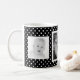 Téléchargez vos propres photos cultivées par carré pour créer une tasse personnalisée de photo. Travaille grand avec des photos d'instagram, télécharge juste ceux que vous aimez employer un programme tel que l'instaport ! Arrière - plan polkadotted noir et blanc, avec trois photos encadrées par blanc carré. Regarde grand avec des photographies de b&w ou de couleur.