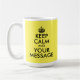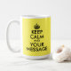 Modifiez la conception du texte sur cette affiche vintage classique "Keep Calm and Carry On" sur la couleur jaune. Couronne noire et texte bloc. Créez une tasse parodique avec cette affiche classique.