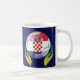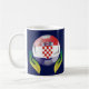 Le dessin montre une balle de football portant les armoiries croates et tenue par deux mains. Les mains s'accrochent fermement au football tandis que les armoiries croates sont fièrement enflammées à la surface du ballon. Les couleurs vives de la crête contrastent avec le classique motif noir et blanc du football, créant un impact visuel frappant. Cette représentation traduit un sentiment de fierté, de passion et de soutien pour l'équipe croate de football.