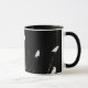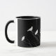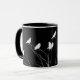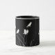 Des corbeaux surplombent l'arbre sur cette tasse de café en noir et blanc.