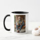 Une tasse de café mémorial qui peut être personnalisée avec la photo d'un être cher et l'histoire de sa vie. Il y a une croix noire et un poème sentimental au dos sur le fait d'être dans les bras de Dieu. Ceux-ci sont agréables à mettre lors des funérailles ou des rassemblements de célébration de la vie pour que les proches puissent les prendre.