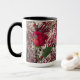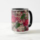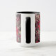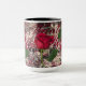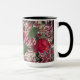 Le motif global est une empreinte dense et collaged de broderie avec des fragments de citation de calligraphie et de longs recouvrements photographiques de rose rouge de tige.