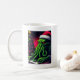 Image de style illustrée de Cthulhu assis à un bureau près d'un beau sapin de Noël. Cthulhu Claus vérifie sa liste coquine et coquine, prête pour le temps de Creepmas. Es-tu sur la liste ?