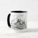 Mug avec dessins du célèbre cuirassé allemand Bismarck de la seconde guerre mondiale avec le nom du navire écrit en lettres de fracture.