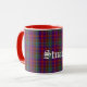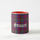 Superbe tasse de clan écossais faite dans le traditionnel motif de plaid Stuart coloré. Le texte de style ancien en blanc lit Stewart et est personnalisable pour lire ce que vous voulez.