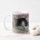 Jolie photo de chat blanc et noir monogramme nom tasse de café.