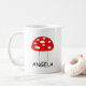 Cute champignon rouge avec taches blanches tasses de café personnalisées. Tasse amusante pour la maison ou le bureau. Boissons sur mesure pour enfants et adultes. Impression recto verso. Ajoutez votre propre nom ou devis. Conception naturelle simple pour les enfants, ramasseur de champignons, maman, femme, fille, etc.