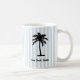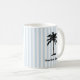 Enjoy our custom beach nautical palm tree painting blue stripe mug.