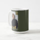 Design a modern graduation keepsake mug for your graduate. Features bold typography and a fresh layout. Personalize with a photo, year, name, and school. Design repeats automatically on the other side of the mug. Shown in trendy olive green and gold, though all colors are editable. © Kimbellished, LLC