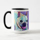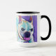 This playful custom pet portrait painting bursts with personality, featuring expressive eyes, upright ears, and a cheeky tongue-out pose. Rendered in bold strokes of blue, purple, yellow, and white against a rich purple background, this portrait captures the charm and sass of this beloved pet.